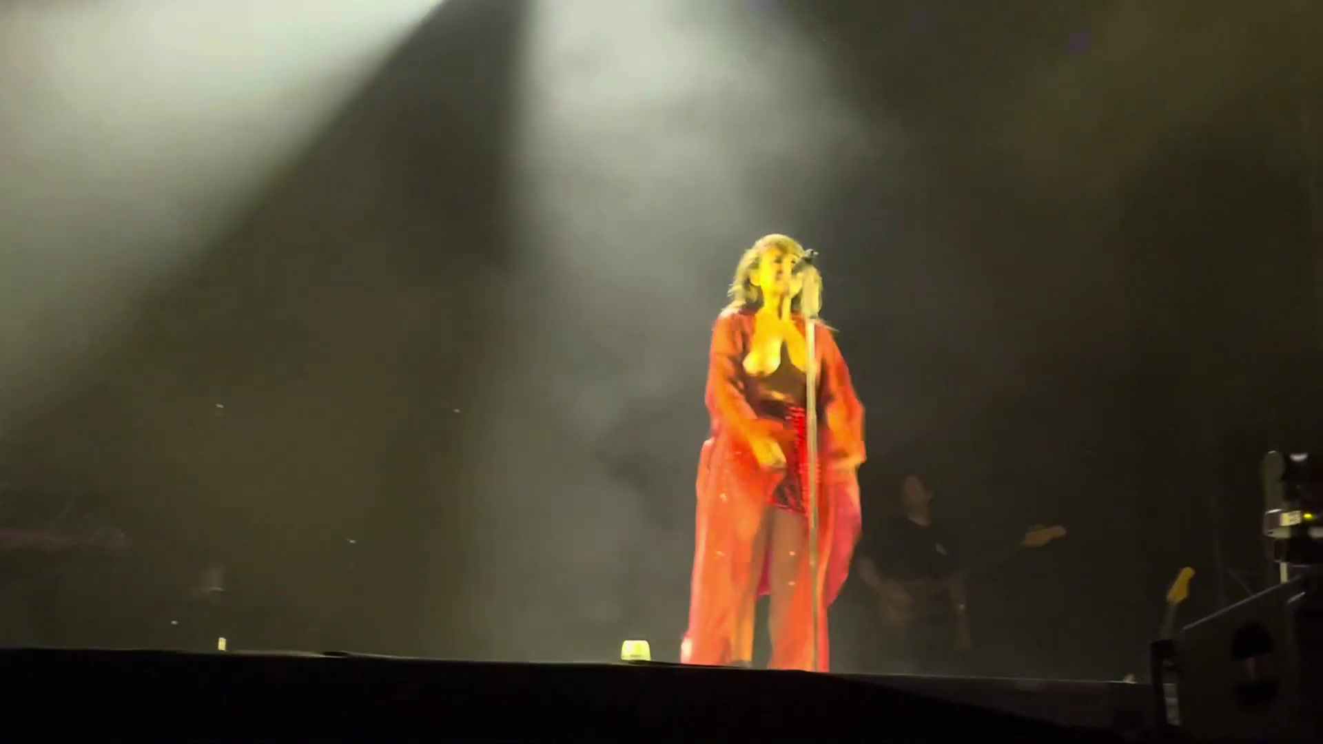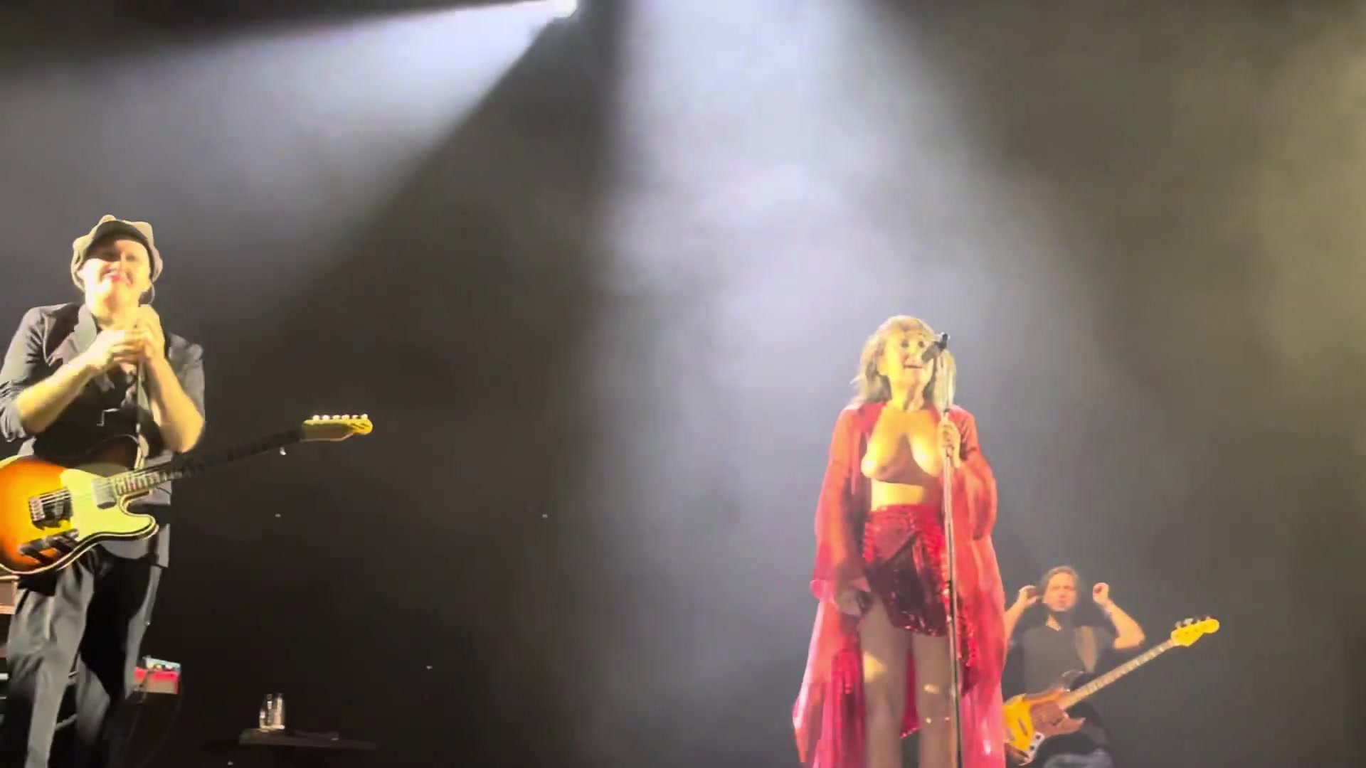 Rock singer, on stage, topless